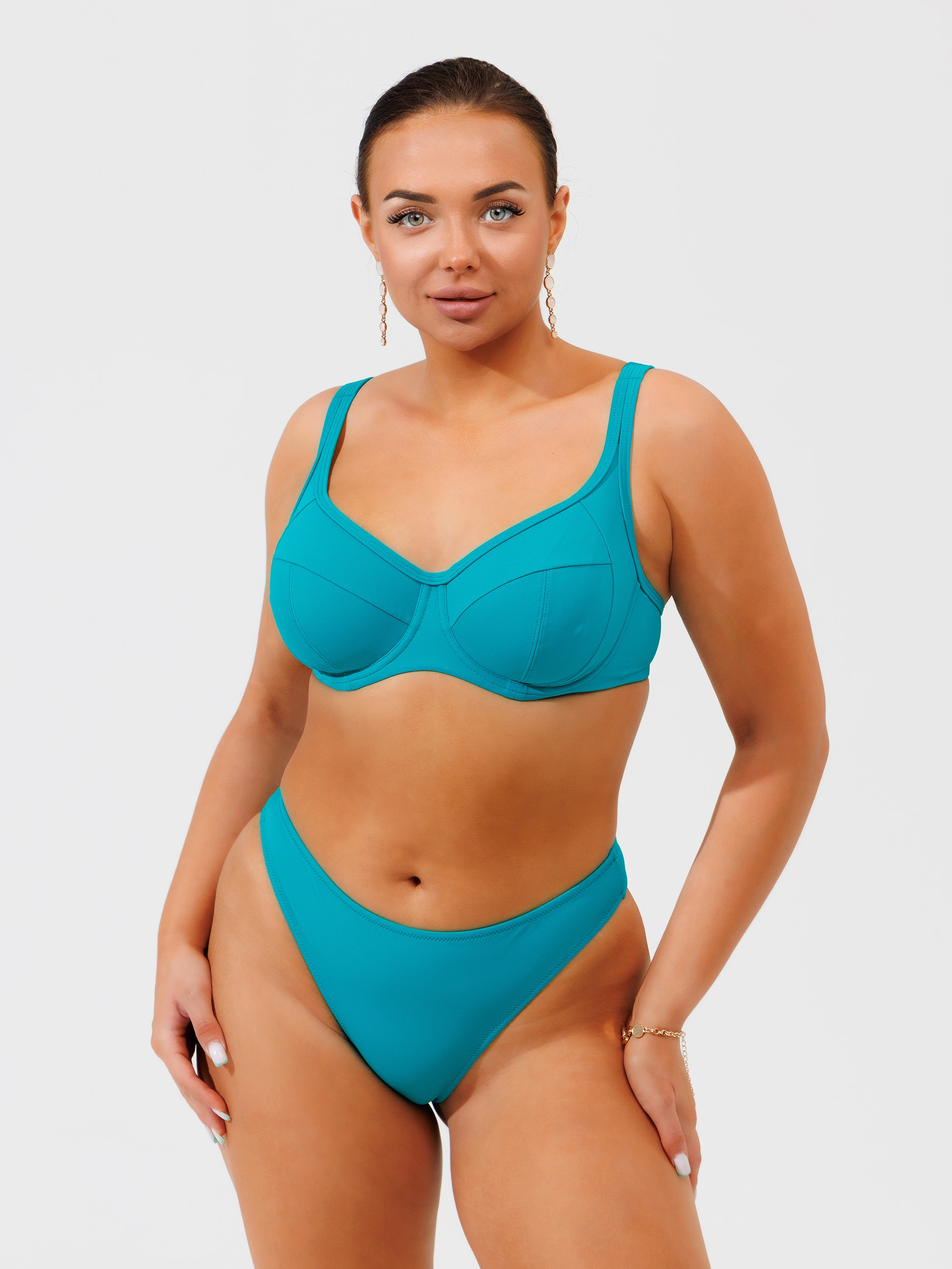 Купальный бюстгальтер латвийского бренда ZeBra в насыщенном бирюзовом цвете — это сочетание безупречной поддержки и яркой эстетики. Модель выполнена в формате фулл-кап, что гарантирует максимальный комфорт и уверенную фиксацию даже для пышного бюста. Гладкая мягкая чаша с классическим Т-образным швом на каркасах бережно приподнимает грудь, придавая ей красивую округлую форму. Регулируемые бретели позволяют идеально настроить посадку под себя, а изысканная золотистая фурнитура эффектно мерцает на солнце, добавляя образу премиальный шик. Этот функциональный и стильный верх — настоящий тренд нового сезона, созданный для тех, кто не готов выбирать между модой и удобством.