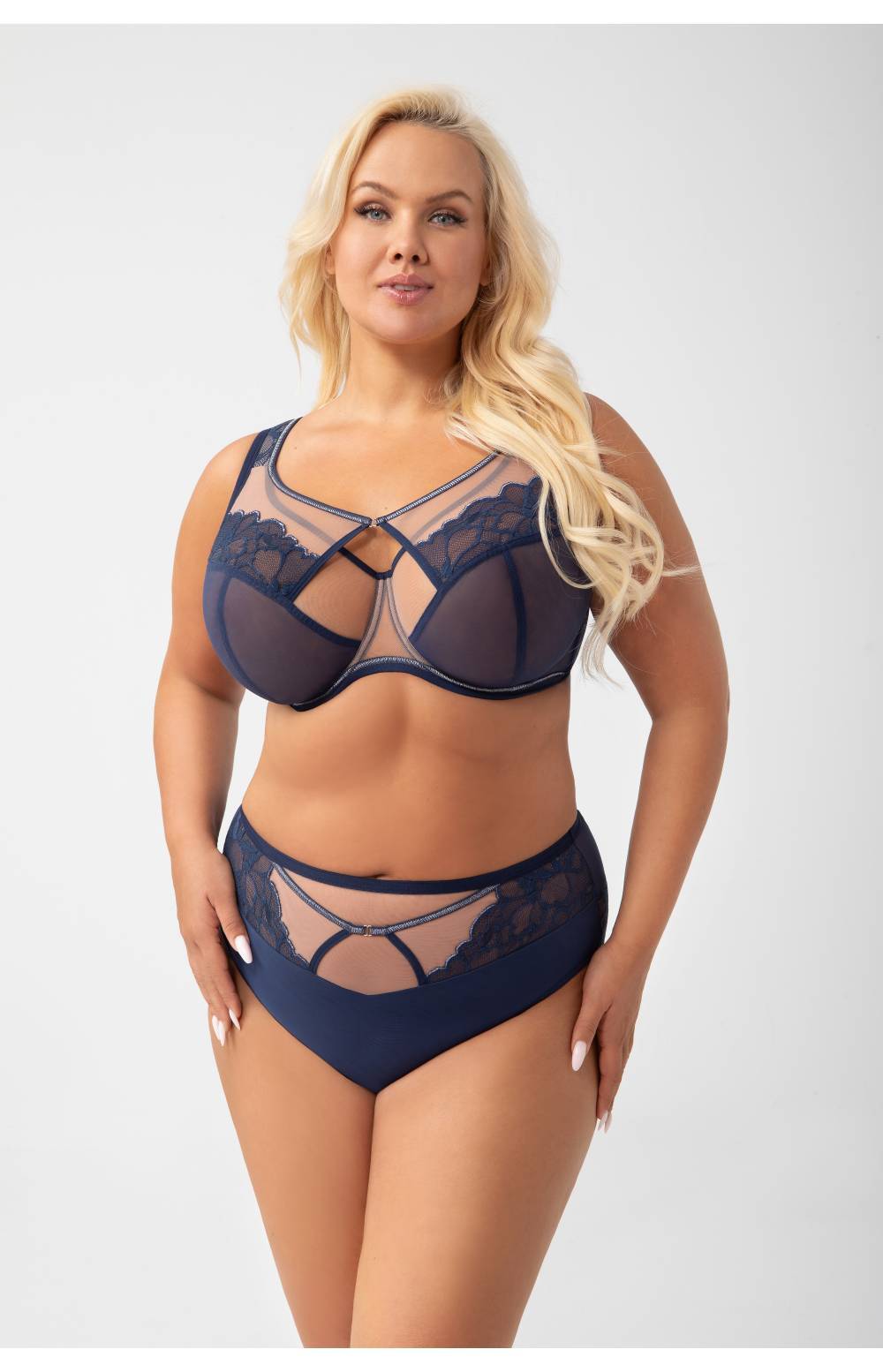Трусы-слипы из коллекции Saanvi польского бренда Gorsenia станут элегантной основой гардероба. Модель выполнена в насыщенном синем цвете и отличается комфортной завышенной талией. Закрытый фасон деликатно обрамляет ягодицы, обеспечивая плотную, но удобную посадку. Эластичный тюль гармонично сочетается с кружевными элементами, а спинка украшена изящным кружевным краем. Хлопковая ластовица обеспечивает удобство на каждый день. Металлические детали без никеля добавляют стильные акценты.